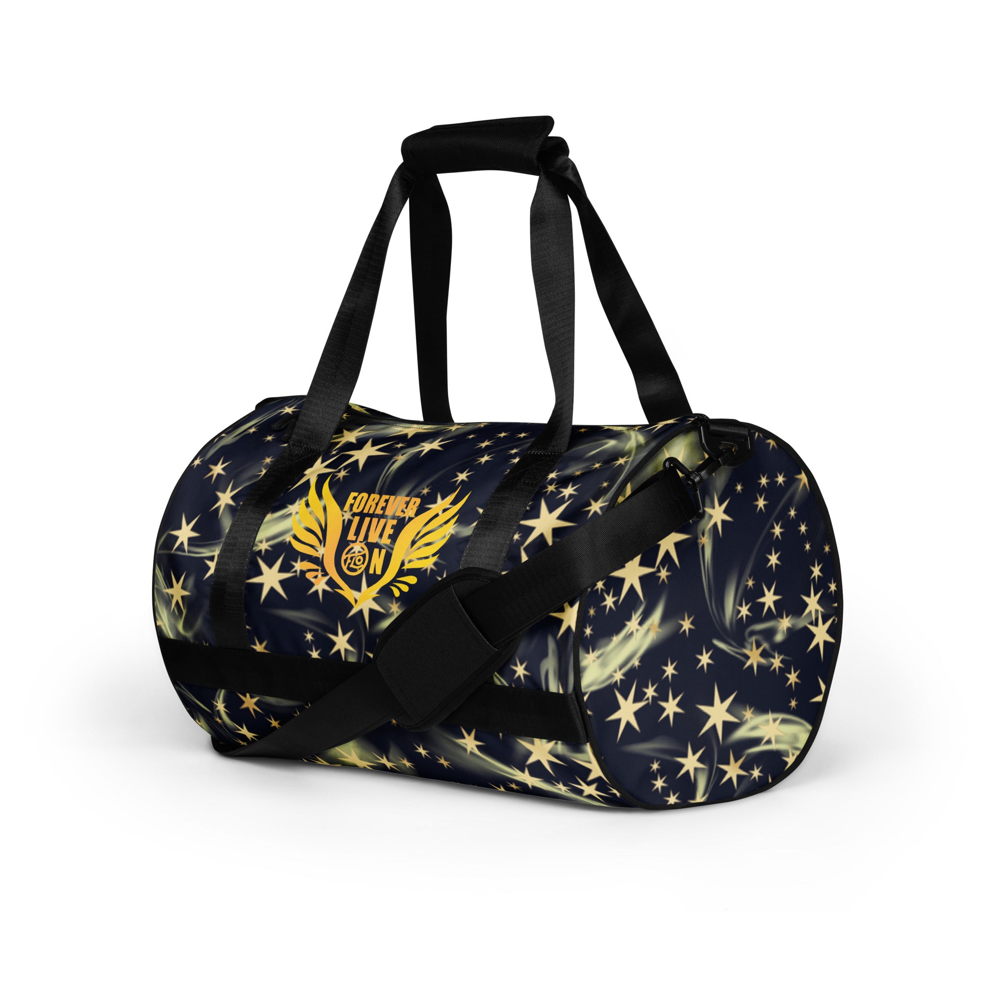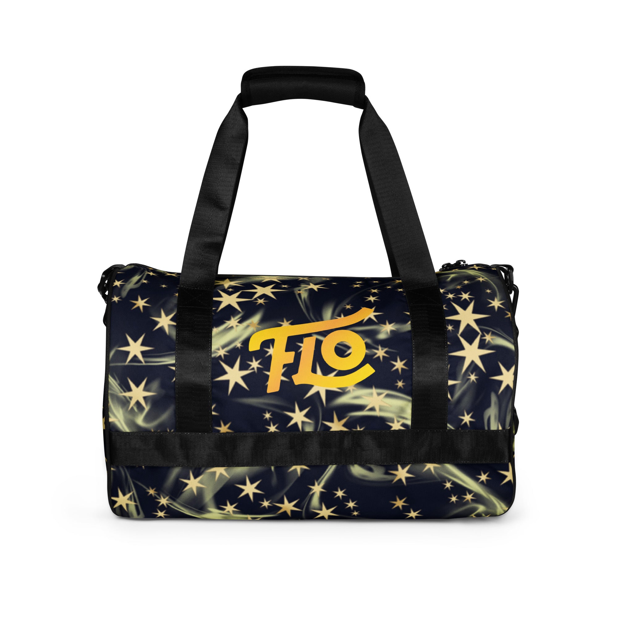 Ready to get your fitness on? Add some punch to pumping iron with this all-over print gym bag. Made from 100% polyester and sturdy, water-resistant fabric, this bag is fun meets function. And it’s got pockets!
